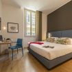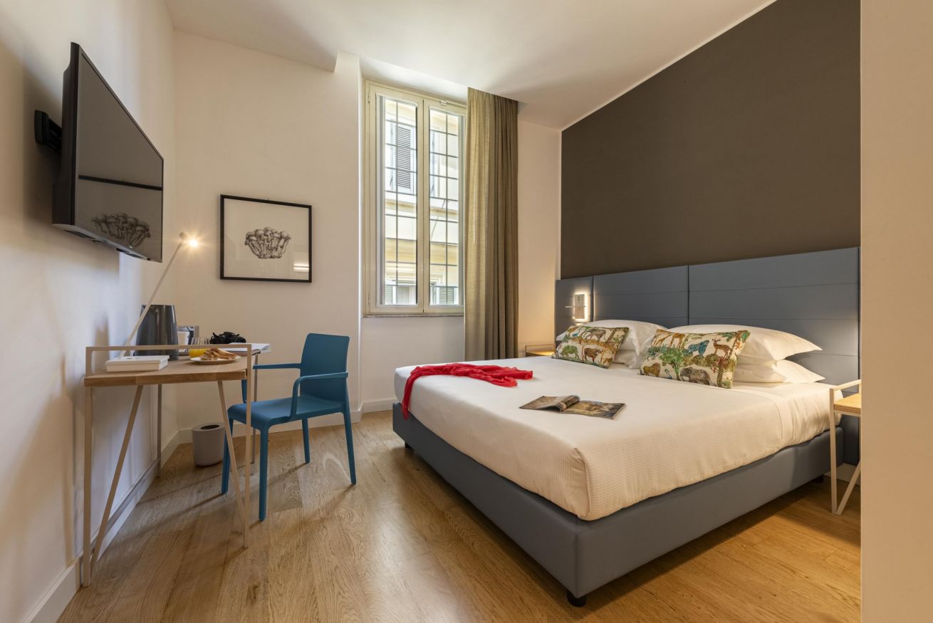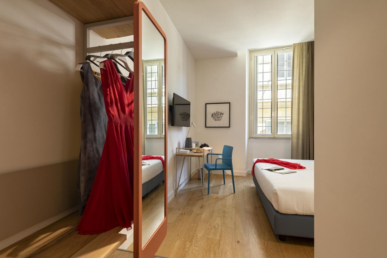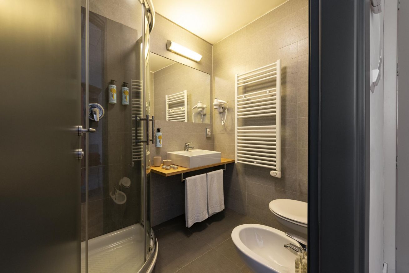 La camera è dotata di bagno con doccia, aria condizionata, connessione wifi, smart TV, cassaforte, minibar a pagamento, bollitore per il thé o caffè, prodotti da bagno Ortigia.